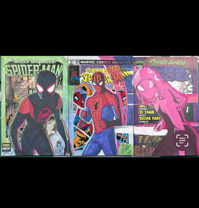 This 3 book set is a collaboration with Mike Doherty and Custom Cut Comics. The issues are Miles Morales Spider-man #1, Amazing Spider-man #238, Spider-Gwen Shadow Clones #1