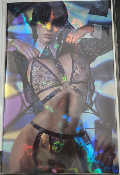 Dark, dazzling, and dangerously collectible — this Lava Foil variant featuring Wednesday Addams cosplay by Shikarii is a sultry standout in the indie comic scene. From its molten gold accents to the gothic-glam energy, this set delivers pure alt-attitude wrapped in foil heat.